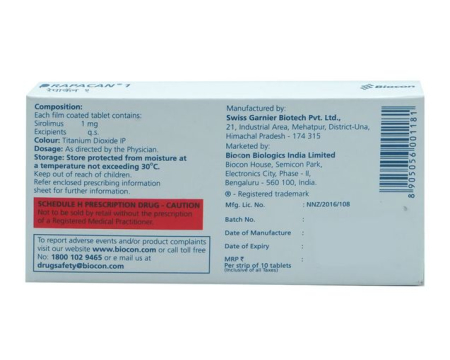 Rapamycin (Rapacan) 1 mg est disponible sous forme de comprimés. Pour tirer le meilleur parti du traitement par Rapamycin, suivez ces règles :